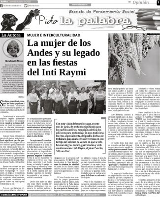 Con esta visión del mundo es que, en este mes de junio, de profundo significado para los pueblos andinos, esta página dedica dos ediciones para profundizar en esos tradicionales ritos, especialmente, del pueblo kichwa de Imbabura para enaltecer sus vivencias en este tiempo del solsticio de verano en que se celebra con alegría, música, gastronomía y vestimentas únicas el Inti Raymi, el Jatun Puncha, “el Gran Día”.